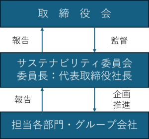 ネクストビジネスシステムでは、グループ全体で横断的にサステナビリティを推進していくため、代表取締役社⻑を委員⻑とする「サステナビリティ推進委員会」を設置し、サステナビリティ活動の企画から推進までの役割を担います。